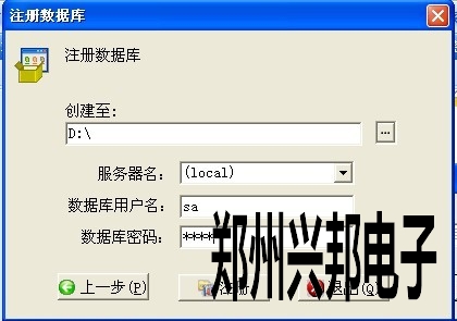 四、選擇存放數(shù)據(jù)庫(kù)的路徑后,選擇本地服務(wù)器并且輸入數(shù)據(jù)庫(kù)的用戶名和密碼。點(diǎn)擊‘注冊(cè)’出現(xiàn)如圖五所示: